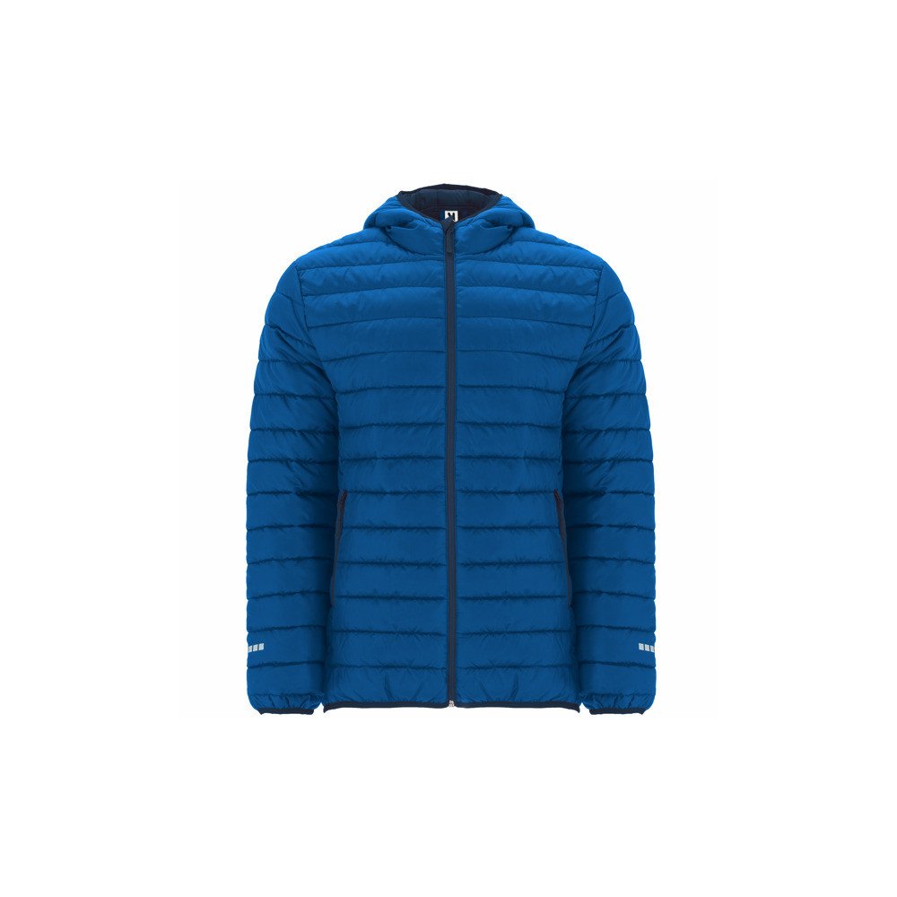 Polsterēta sporta jaka ar spalvu pildījumu.· Kontrastējošas krāsas apgriezts frontālais rāvējslēdzējs ar zoda aizsargu un izvilcēju.· Kapuce.· Sānu kabatas krāsā, kas kontrastē ar slēgto rāvējslēdzēju un savilcēju.· Atstarojošas detaļas uz piedurknēm un muguras.· Apakša ir 4 cm garāka nekā NORWAY modelim· Kapuce, aproces un apakšējās daļas ar elastīgu malu.· Ietver maisu, kur uzglabāt jaku.