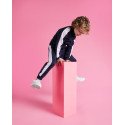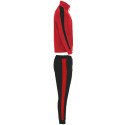 Комбинированный спортивный костюм с кофтой и брюками.1. Высокий воротник с закрытыми внутренними швами в тон.2. Горловина, манжеты и низ в рубчик 1 x 1. 3. Молния по центру в тон с бегунком. 4. Боковые карманы кофты на молнии.5. Контрастная полоса по бокам. 6. Брюки с эластичным поясом со шнурками для регулировки.7. Два карманы по бокам.8. Карман сзади на молнии.9. Низ с эластичными манжетами в рубчик 1 x 1.