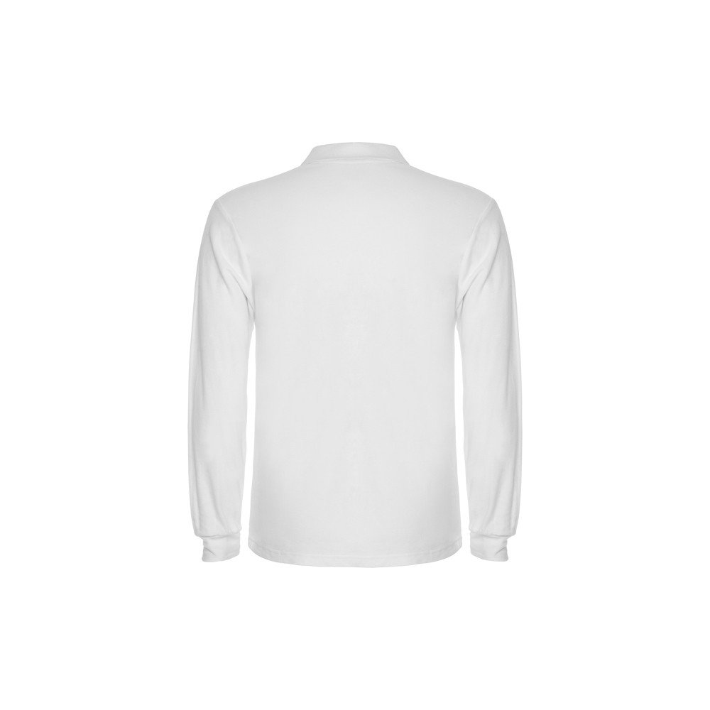 Футболка поло с длинными рукавами. Воротник и манжеты в рубчик, планка на 3 пуговицы и манжеты в рубчик 1 x 1 с эластаном. Усиленные закрытые швы горловины.