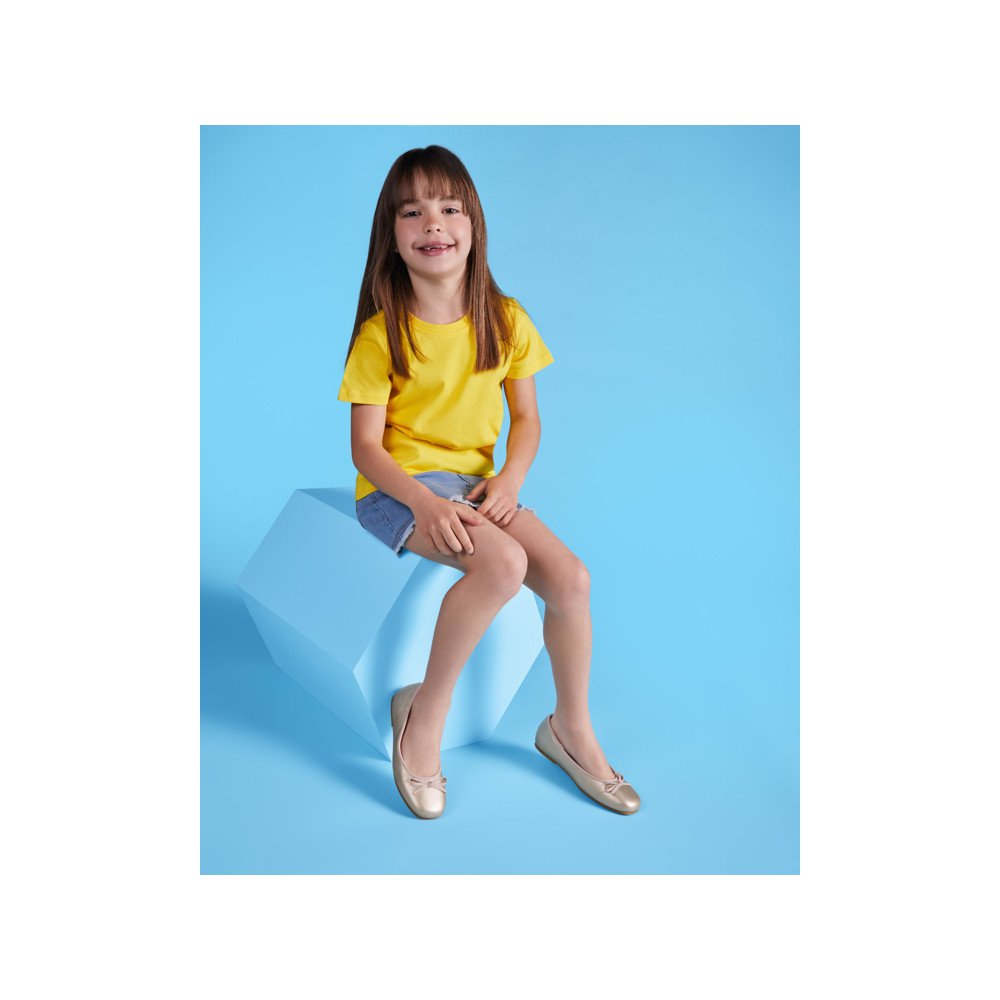 Футболка из трубчатой ткани с короткими рукавами. Круглая горловина с эластаном. Размеры для детей имеют боковые швы.