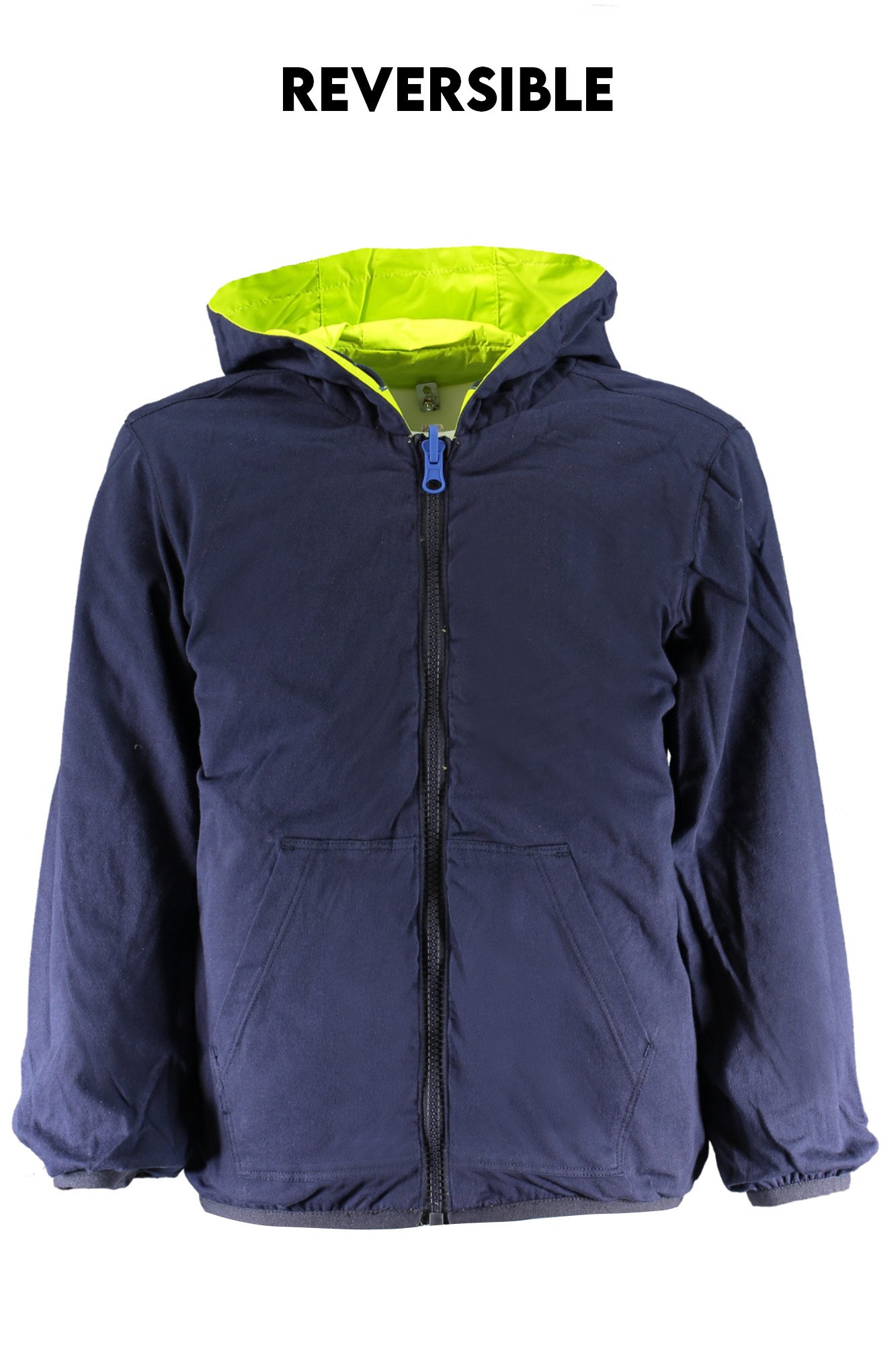 Реверсивная куртка, длинные рукава с капюшоном, 2 внутренних кармана, 2 внешних кармана, аппликация, принт, молния, логотип, органический хлопок