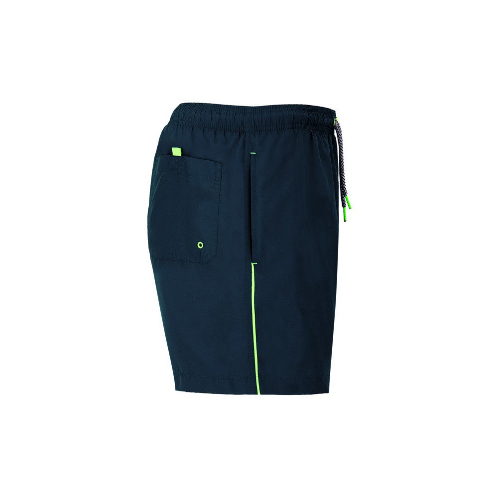 Купальные шорты с двумя боковыми карманами. Эластичный пояс с контрастными шнурками для регулирования и металлическими люверсами. Контрастная окантовка по бокам. Карман сзади с люверсом для кабеля.
