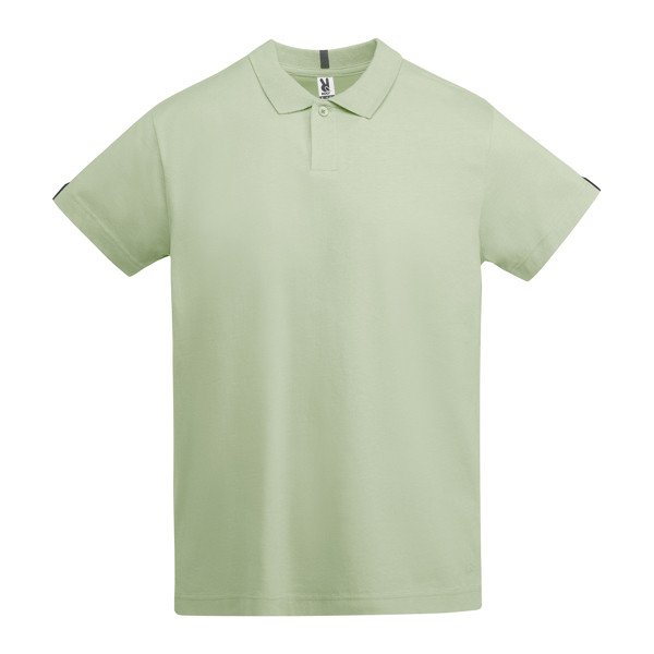 Рубашка·поло с коротким рукавом из однотонного трикотажа. Воротник в рубчик 1x1 и окантовка рукавов. Разрез с застежкой на 1 пуговицу. Усиленные закрытые швы в воротнике. Боковые разрезы на подоле. Контрастные детали манжет и воротника в елочку. Логотип Roly на внутренней ткани.