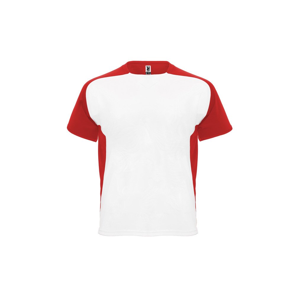 Техническая футболка с короткими рукавами реглан. 1. Круглая горловина с закрытыми швами в тон. 2. Контрастные рукава и боковые вставки.