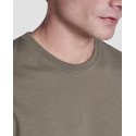 Футболка с короткими рукавами, изготовленная из тонкой плотной ткани с уплотненными краями. Четырехслойная круглая горловина. Усиленные закрытые швы горловины и на плечах. Боковые швы.