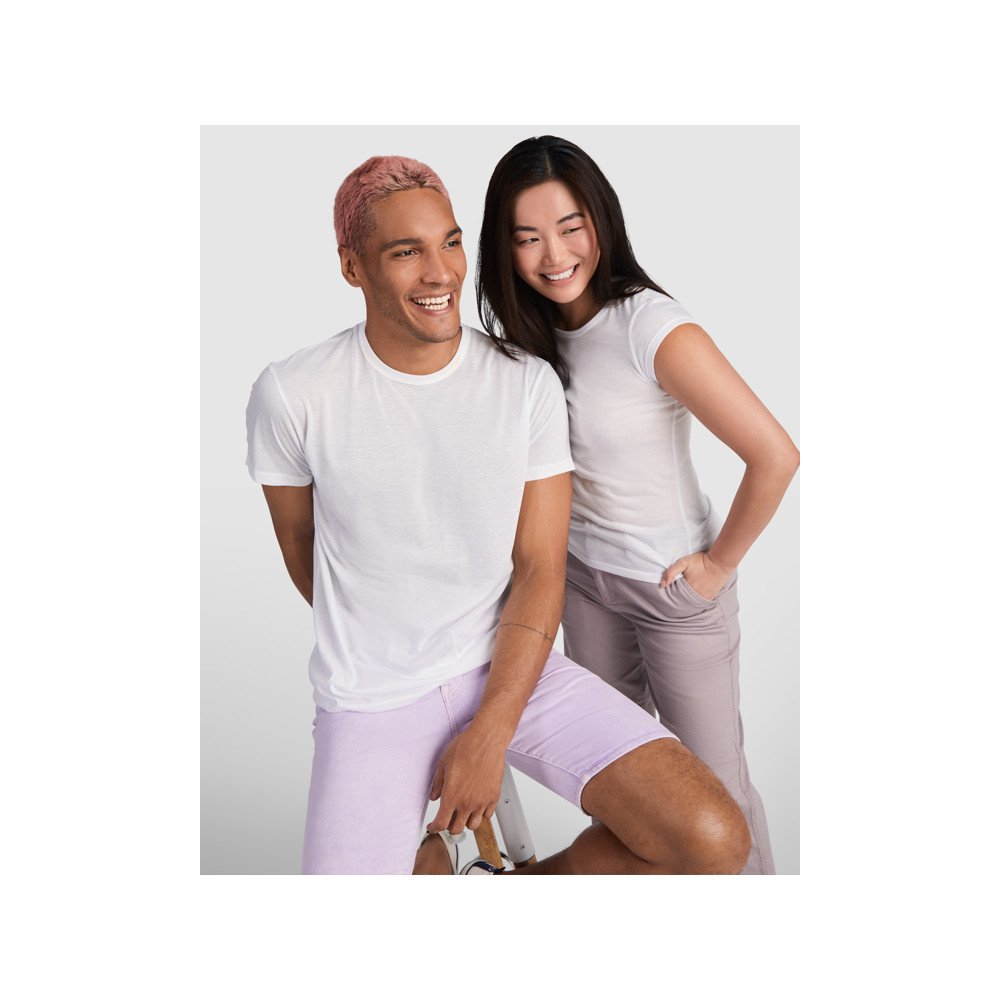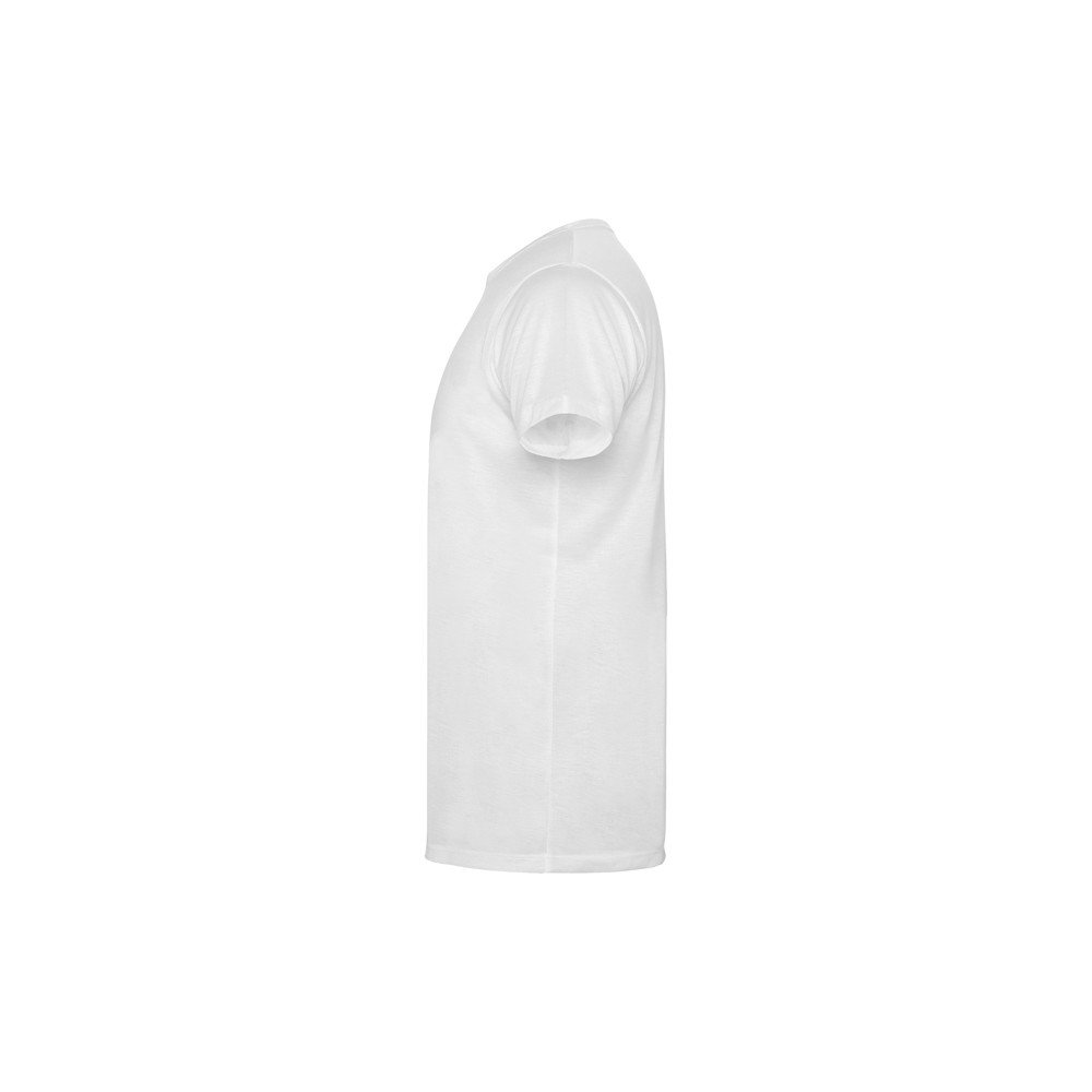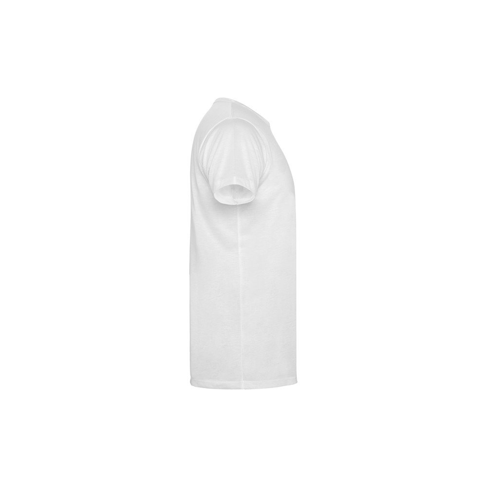 Футболка с короткими рукавами, круглой горловиной с окантовкой из той же ткани и боковыми швами. Ткань: полиэстер «под хлопок».