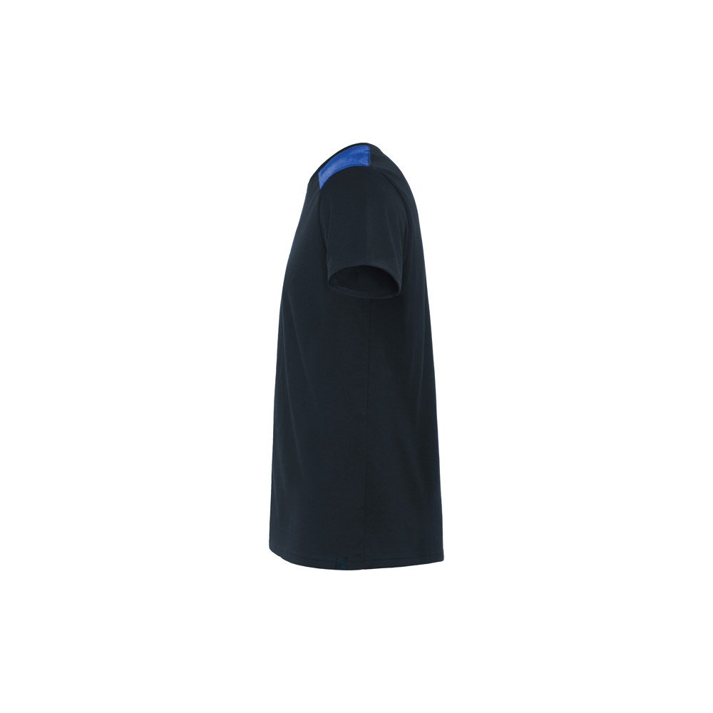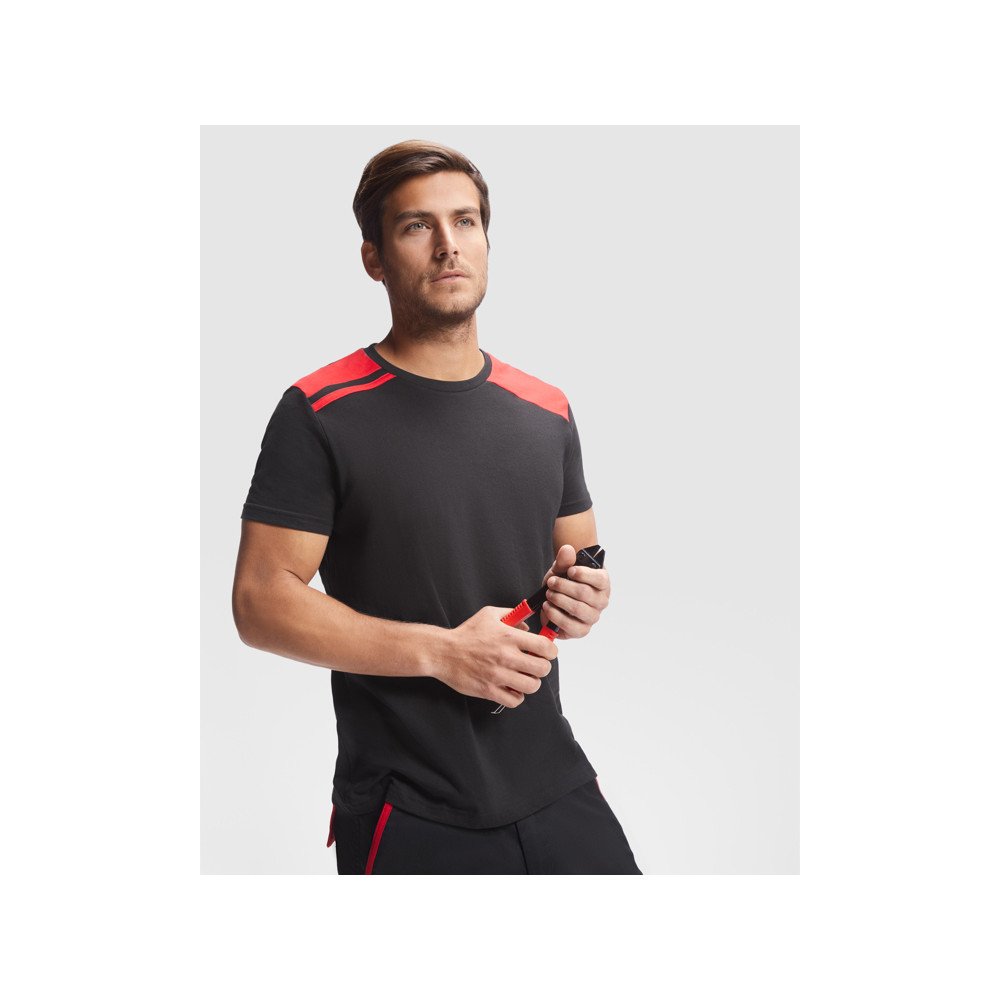 Футболка комбинированного цвета с короткими рукавами. · Круглая горловина с контрастными закрытыми внутренними швами. · Контрастные плечевые вставки и детали.