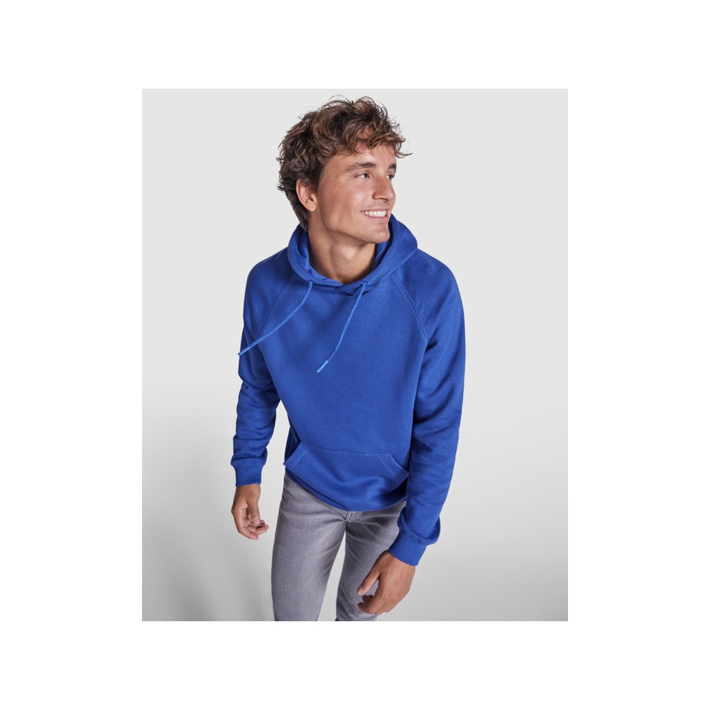 Худи унисекс с капюшоном из органического хлопка и переработанного полиэстера. Карман-кенгуру. Капюшон с подкладкой из одинарного трикотажа, круглым шнурком для регулировки и обшитыми люверсами. Горловина, манжеты и низ из трикотажа в рубчик 2 x 1.