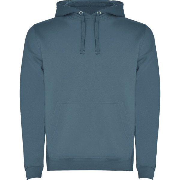 Худи с двухцветным капюшоном с двойной ткани и контрастным шнурком для регулировки, закрытыми швами горловины и карманом-кенгуру. Манжеты и низ в рубчик 1 x 1 с эластаном. Модель для детей — с капюшоном без шнурка.