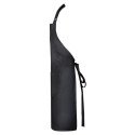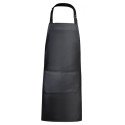 Длинный саржевый фартук из переработанного полиэстера и хлопка. Шейный ремешок с регулируемой застежкой. Завязки по бокам. Два передних кармана.