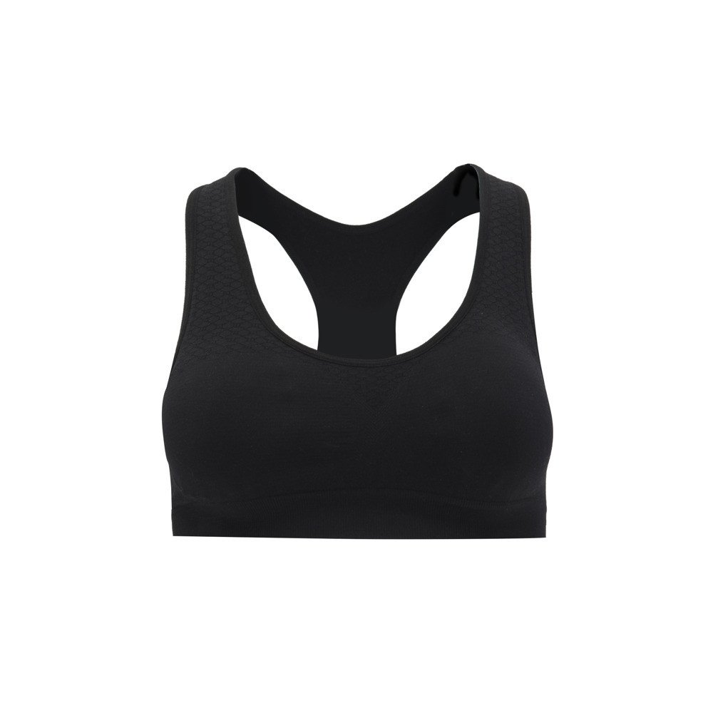 Женский технический топ для занятий спортом. Спинка-борцовка и бесшовная конструкция. Средняя степень поддержки.
