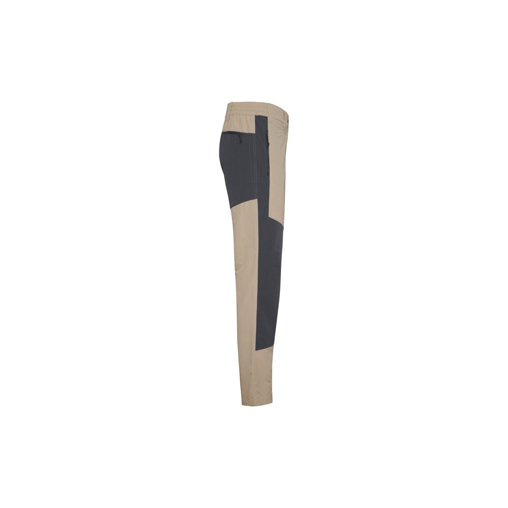 Трекинговые брюки унисекс, выполненные из двух видов ткани. Эластичный пояс по бокам. Петли для ремня. Два боковых кармана с обернутыми молниями. Задний правый карман с обернутыми молниями. Эластичная ткань спереди и сзади обеспечивает большую свободу движений.