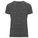 Женская техническая футболка с короткими рукавами. 1. Круглая горловина. 2. Сочетание двух тканей с полиэстера на спине, плечах и рукавах. 3. Основная ткань спереди — ткань bird's eye, и ткань space dye — сзади. 4. Спинка немного длиннее переда.