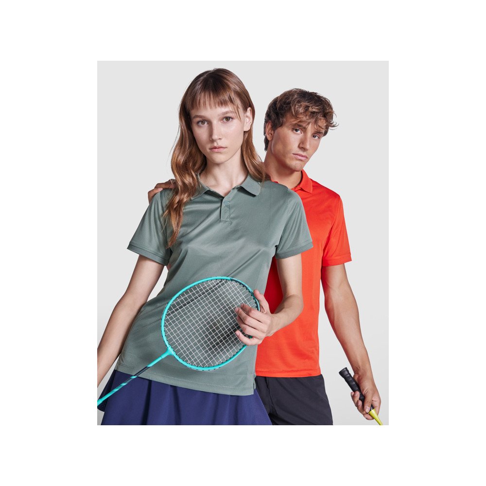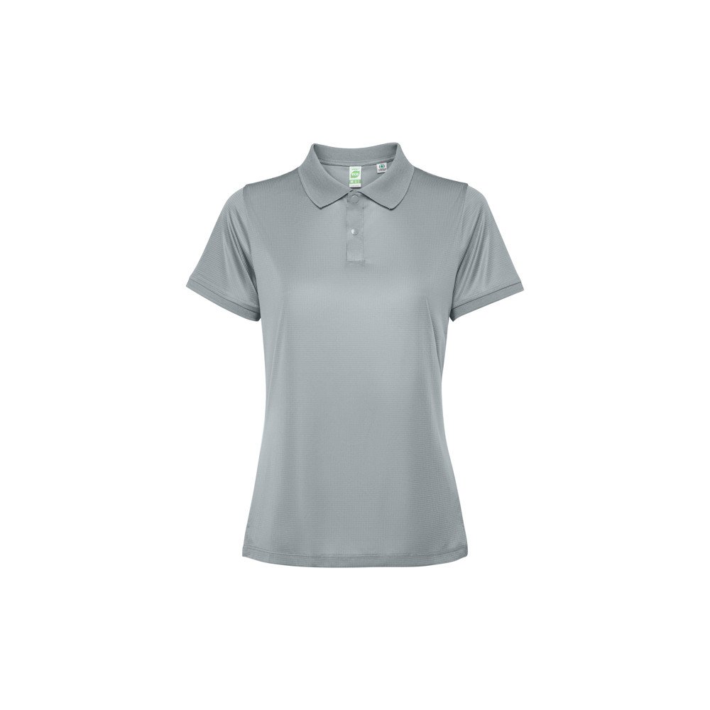 Женская приталенная техническая футболка поло с коротким рукавом. Воротник из полиэстера в рубчик 1x1 с пластиковыми застежками, в цвет с планкой. Отделка швов в цвет. Рукав с отделкой в рубчик 1x1 в цвет.