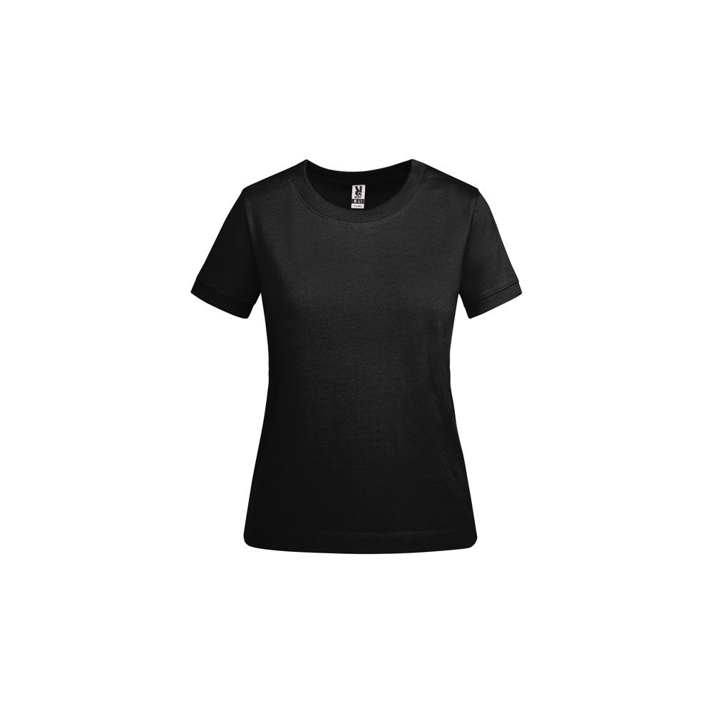 Толстая женская футболка с коротким рукавом из хлопка. Широкая горловина в рубчик 2x1 и окантовка краев рукавов. Усиленные закрытые швы в воротнике. Боковые швы. Наличие логотипа Roly на левой стороне подола. Широкий шов на подоле.