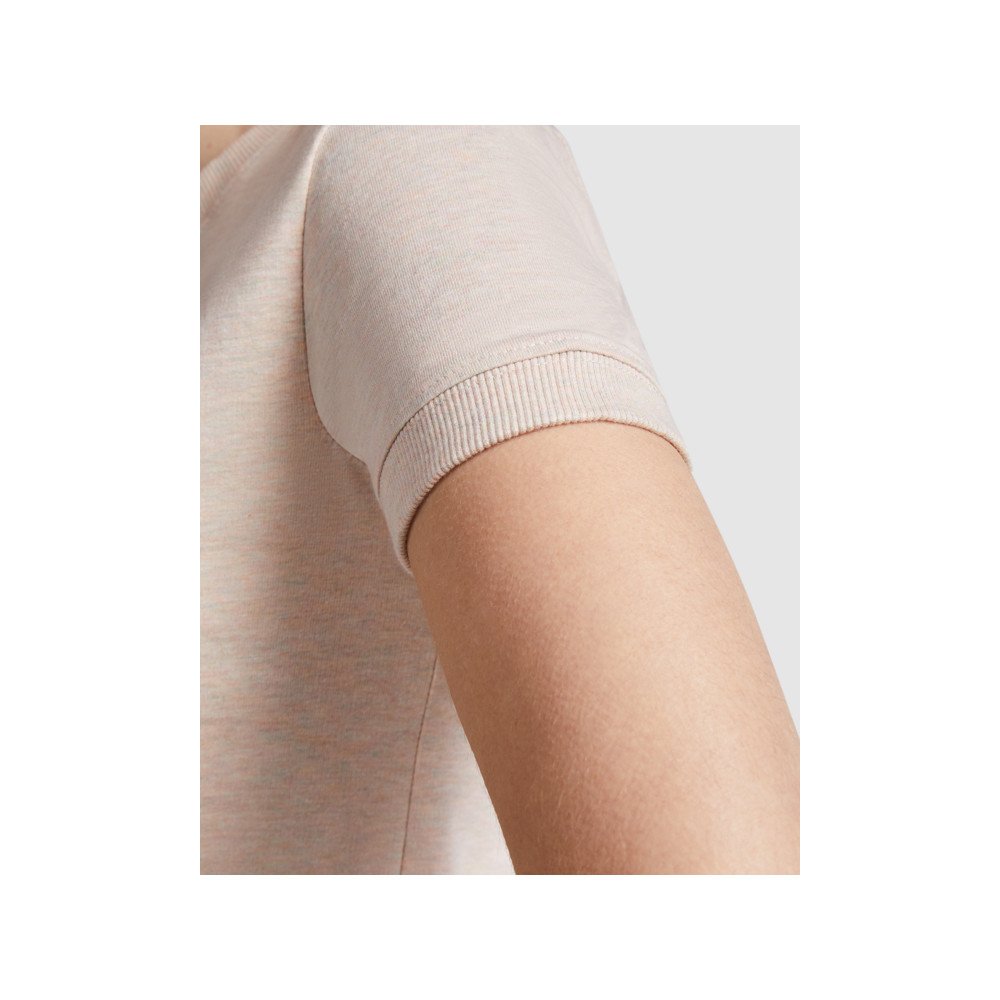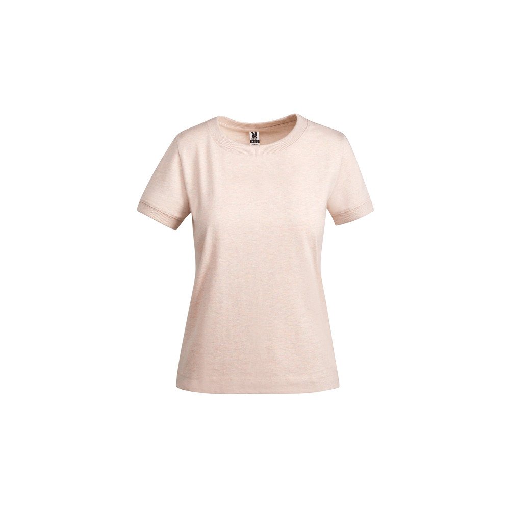 Толстая женская футболка с коротким рукавом из хлопка. Широкая горловина в рубчик 2x1 и окантовка краев рукавов. Усиленные закрытые швы в воротнике. Боковые швы. Наличие логотипа Roly на левой стороне подола. Широкий шов на подоле.
