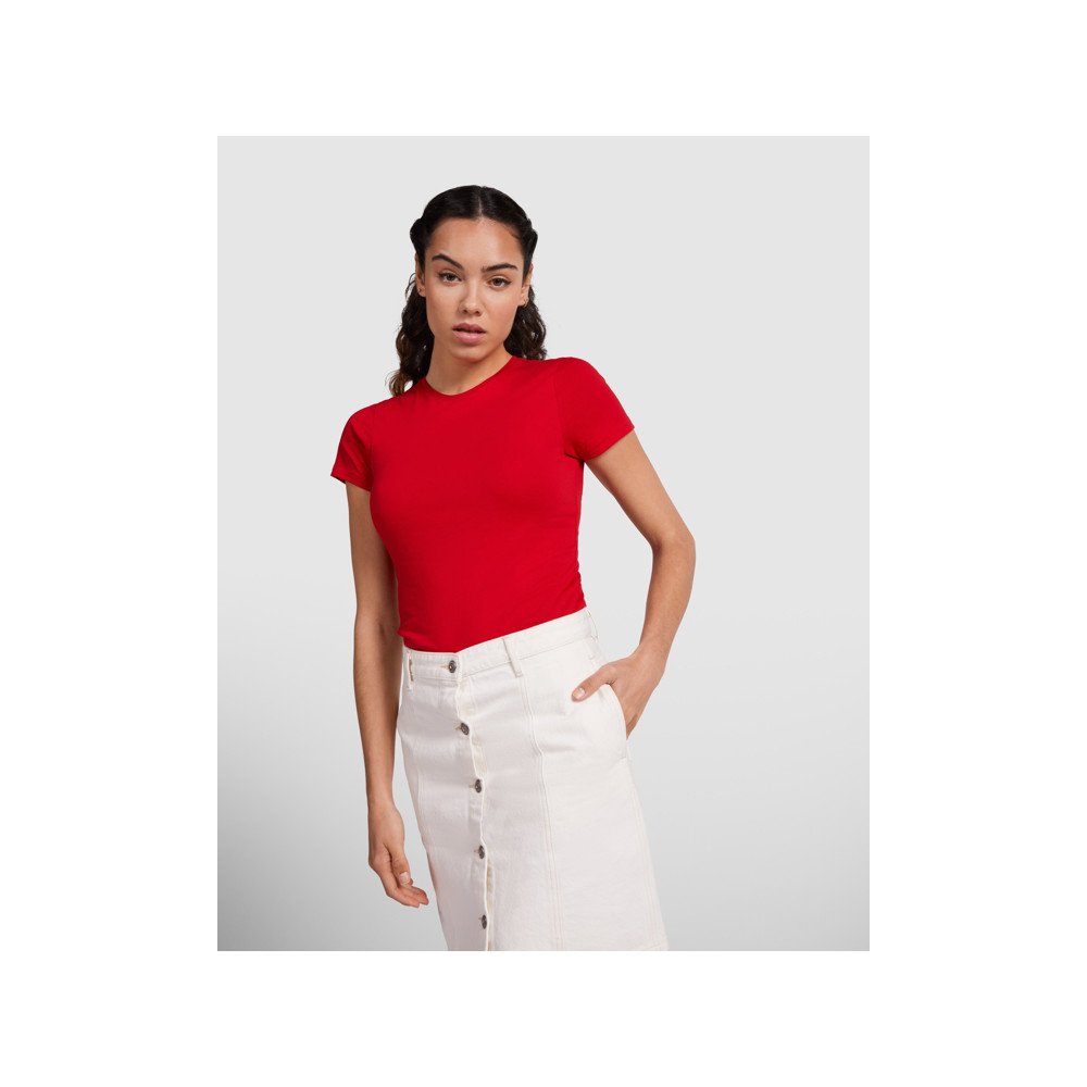 Приталенная футболка с короткими рукавами с органического хлопка. Круглая горловина в рубчик 1 x 1. Декоративные швы на рукавах и внизу. Боковые швы.