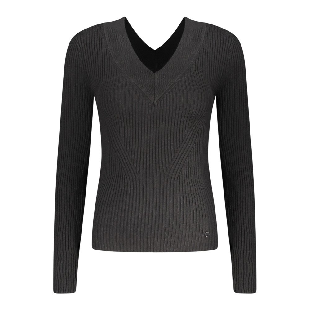 Длинный свитер с длинными рукавами, V-образным вырезом, контрастными деталями, логотипом