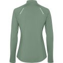 Женская техническая приталенная толстовка с длинным рукавом реглан. Воротник с обернутой застежкой-молнией и светоотражающей лентой. Усиленные покрытия швов. Манжеты с отверстиями для большого пальца. Светоотражающие детали сзади. Задний край немного длиннее переднего. Внутренняя теплая ткань с начесом.