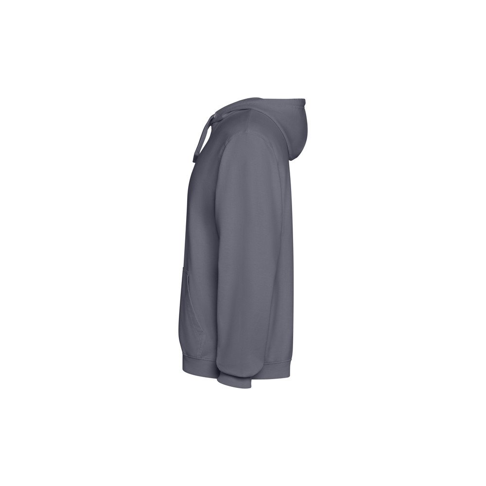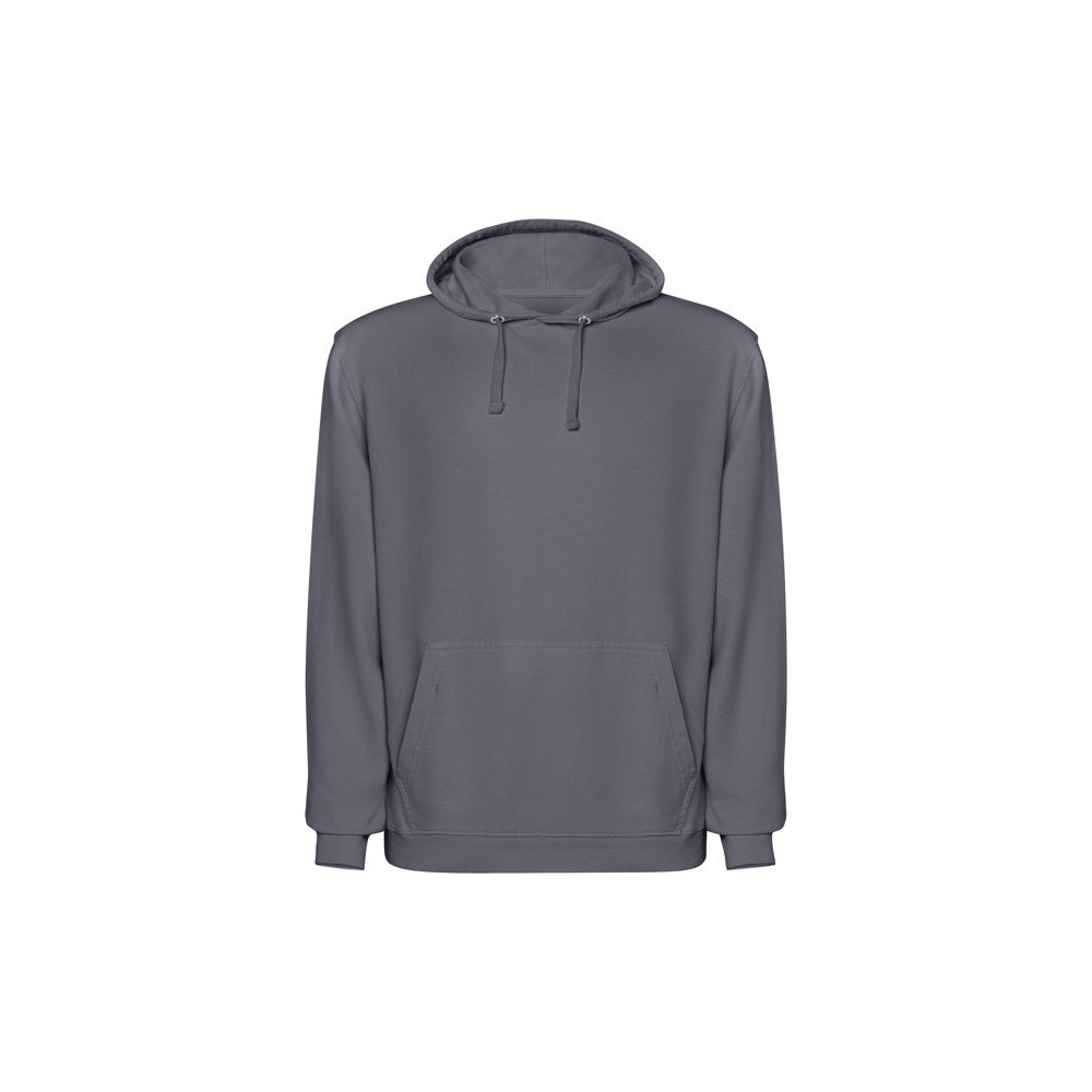 Unisex sweatshirt with tone-on-tone lined hood, 100% cotton with acid washed finish. Cuffs and hem in 2x1 rib. Matching flat drawstring. Collar with tone-on-tone seam cover. Kangaroo pocket.