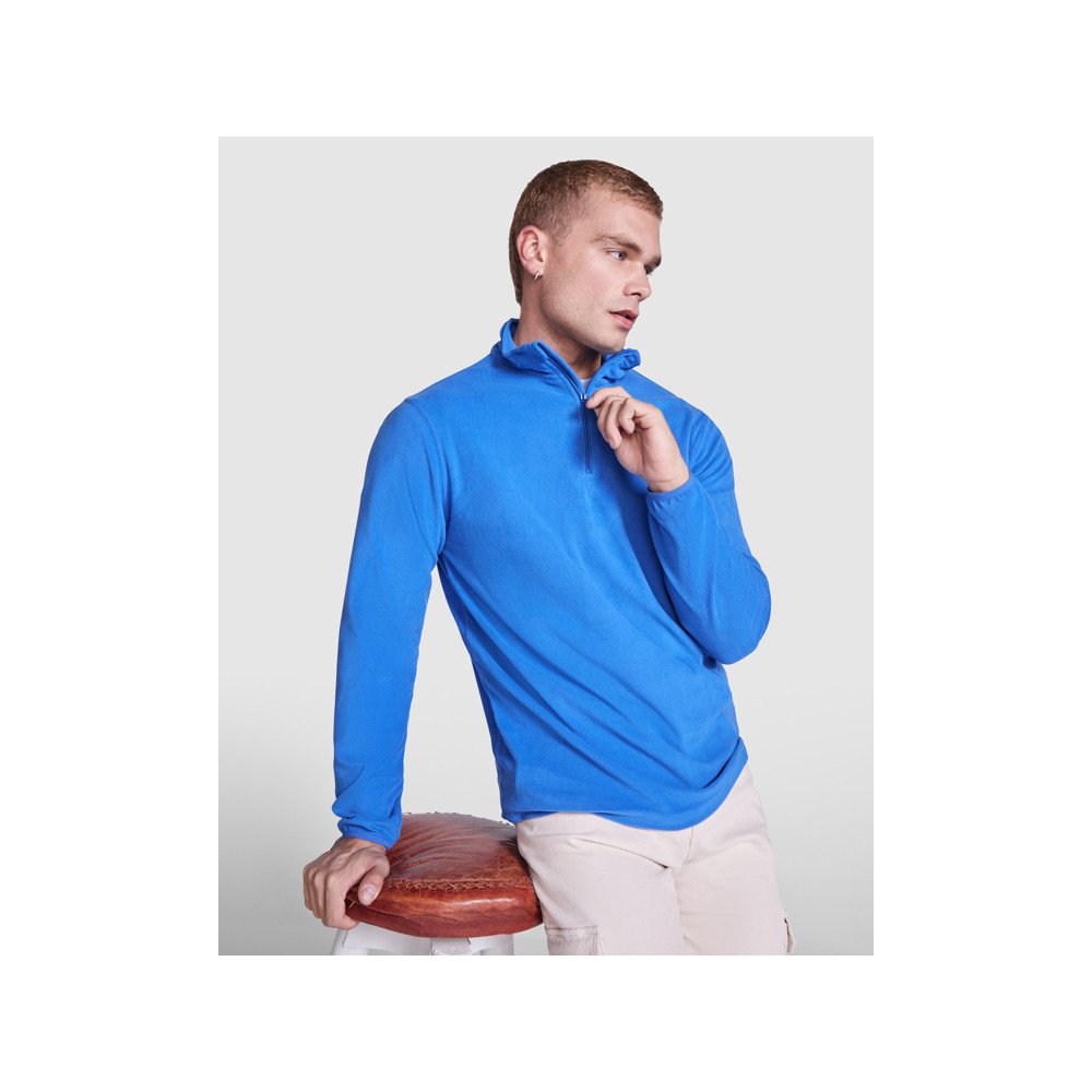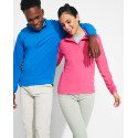 Флисовая кофта с высоким воротником на укороченной молнии, с защитой для подбородка. Манжеты с эластичной окантовкой в тон.