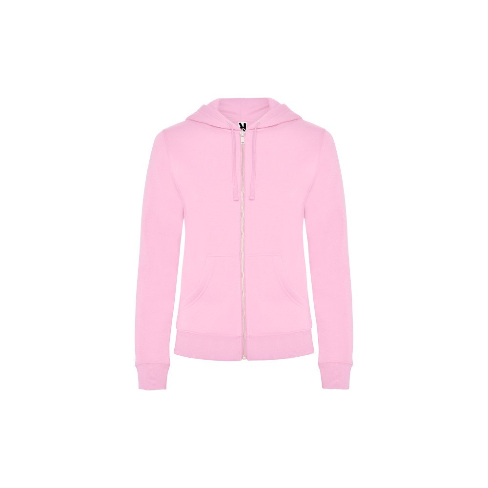 Женское худи с капюшоном с подкладкой в тон. 1. Металлическая молния спереди. 2. Карман-кенгуру. 3. Усиленные закрытые внутренние швы горловины. 4. Манжеты рукавов и низ в рубчик 2 x 2. 5. Приталенный крой.